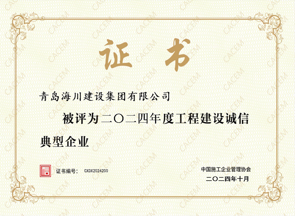 青島海川建設(shè)集團(tuán)榮獲工程建設(shè)誠(chéng)信典型企業(yè)等多項(xiàng)榮譽(yù)2024-10-31為全面推進(jìn)工程建設(shè)行業(yè)信用體系建設(shè),樹(shù)立誠(chéng)信建造品牌,營(yíng)造良好信用環(huán)境,中國(guó)施工企業(yè)管理協(xié)會(huì)繼續(xù)開(kāi)展本年度工程建設(shè)誠(chéng)信典型企業(yè)評(píng)估工作,經(jīng)企業(yè)申報(bào)、評(píng)選、公示、公布,青島海川建設(shè)集團(tuán)有限公司成功獲評(píng)工程建設(shè)誠(chéng)信典型企業(yè)榮譽(yù),連續(xù)5年榮獲此殊榮。在中國(guó)施工企業(yè)管理協(xié)會(huì)開(kāi)展... -