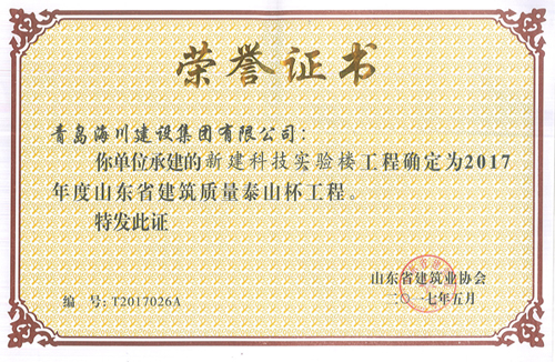 2013年11月20日開工,2016年工程竣工驗(yàn)收并備案,自開工伊始即確定了爭創(chuàng)“泰山杯”的質(zhì)量目標(biāo),“泰山杯”獎是山東省建筑行業(yè)工程質(zhì)量方面的最高榮譽(yù)獎。“泰山杯”獎(省優(yōu)質(zhì)工程)是為貫徹執(zhí)行國家《質(zhì)量振興綱要》和《建設(shè)工程質(zhì)量管理?xiàng)l例》,泰山杯堅(jiān)持“百年大計(jì)、質(zhì)量第一”和“質(zhì)量興業(yè)”的方針,鼓勵建筑施工企業(yè)加強(qiáng)管理,搞好工程質(zhì)量,爭創(chuàng)一流工程,推動山東省工程質(zhì)量水平的普遍提高,在全行業(yè)繼續(xù)開展工程創(chuàng)優(yōu)評獎活動而建立的一個獎項(xiàng),獎名定為山東省建筑工程質(zhì)量“泰山杯”獎(省優(yōu)質(zhì)工程),簡稱“泰山杯”獎。