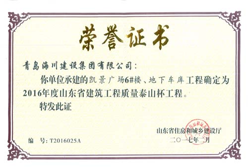 海川集團(tuán)捧回二項(xiàng)泰山杯證書