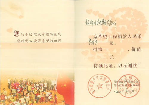 海川集團(tuán)多年來一直把履行社會(huì)義務(wù),回饋社會(huì),報(bào)效祖國作為企業(yè)的重要職責(zé),在企業(yè)發(fā)展的同時(shí),不忘社會(huì)公益事業(yè),十幾年來已向社會(huì)公益事業(yè)捐款累計(jì)超過460萬元:先后向青島市教師素質(zhì)專項(xiàng)基金捐款30萬元,捐建貴州江口縣雙江鎮(zhèn)希望中學(xué)30萬元,捐建膠南市黃山鎮(zhèn)希望小學(xué)30萬元。并通過基金會(huì)捐助惜福鎮(zhèn)后金小學(xué)多臺電腦用于教學(xué),2013年4月,又向惜福鎮(zhèn)“為了惜福孩子的明天”大型公益活動(dòng)捐款30萬元。另外,在汶川地震期間,組織廣大職工開展賑災(zāi)捐助活動(dòng),奉獻(xiàn)愛心,先后向市紅十字會(huì)捐款129690元,榮獲“紅十字博愛銀獎(jiǎng)”。近年又為惜福鎮(zhèn)教育基金捐款300萬元。2014年至今,連續(xù)三次組織員工積極開展無償獻(xiàn)血公益活動(dòng),緩解了島城醫(yī)療機(jī)構(gòu)臨床用血的緊張局面,充分體現(xiàn)了海川集團(tuán)及廣大員工的社會(huì)責(zé)任感和無私奉獻(xiàn)精神。