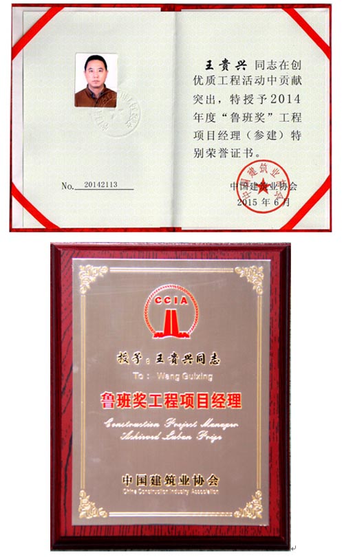 6月8日,全國(guó)建筑業(yè)企業(yè)優(yōu)秀項(xiàng)目經(jīng)理與“魯班獎(jiǎng)”工程項(xiàng)目經(jīng)理高級(jí)研修班在魯班的家鄉(xiāng)山東曲阜隆重舉辦。集團(tuán)總裁助理、四分公司總經(jīng)理王貴興參加會(huì)議并領(lǐng)取了2014年度魯班獎(jiǎng)項(xiàng)目經(jīng)理獎(jiǎng)牌和證書(shū)。